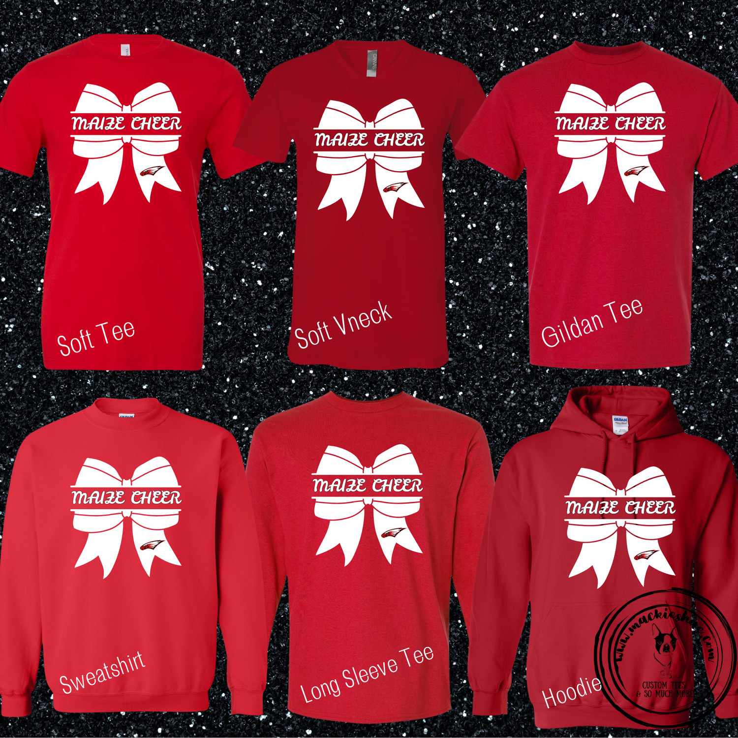 Maize Cheer White Bow with Eagle Custom Shirt, Red Gear