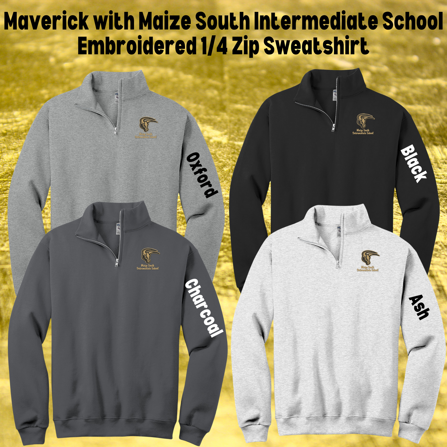 Maverick with Maize South Intermediate School Embroidered 1/4 Zip Sweatshirt for Adults