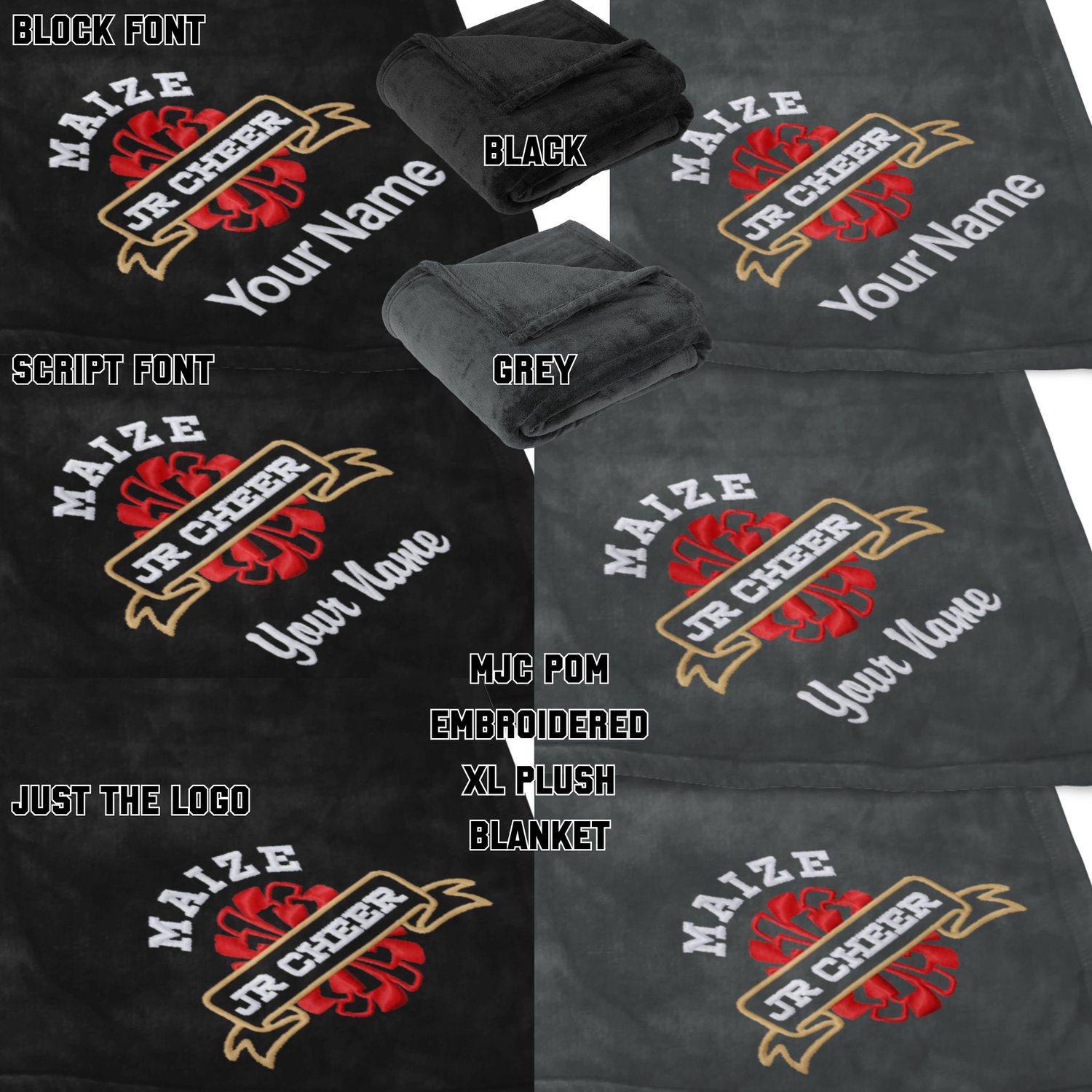 MJC- Maize Jr Cheer Pom Embroidered Extra Large Ultra Plush Blanket, Personalization Options