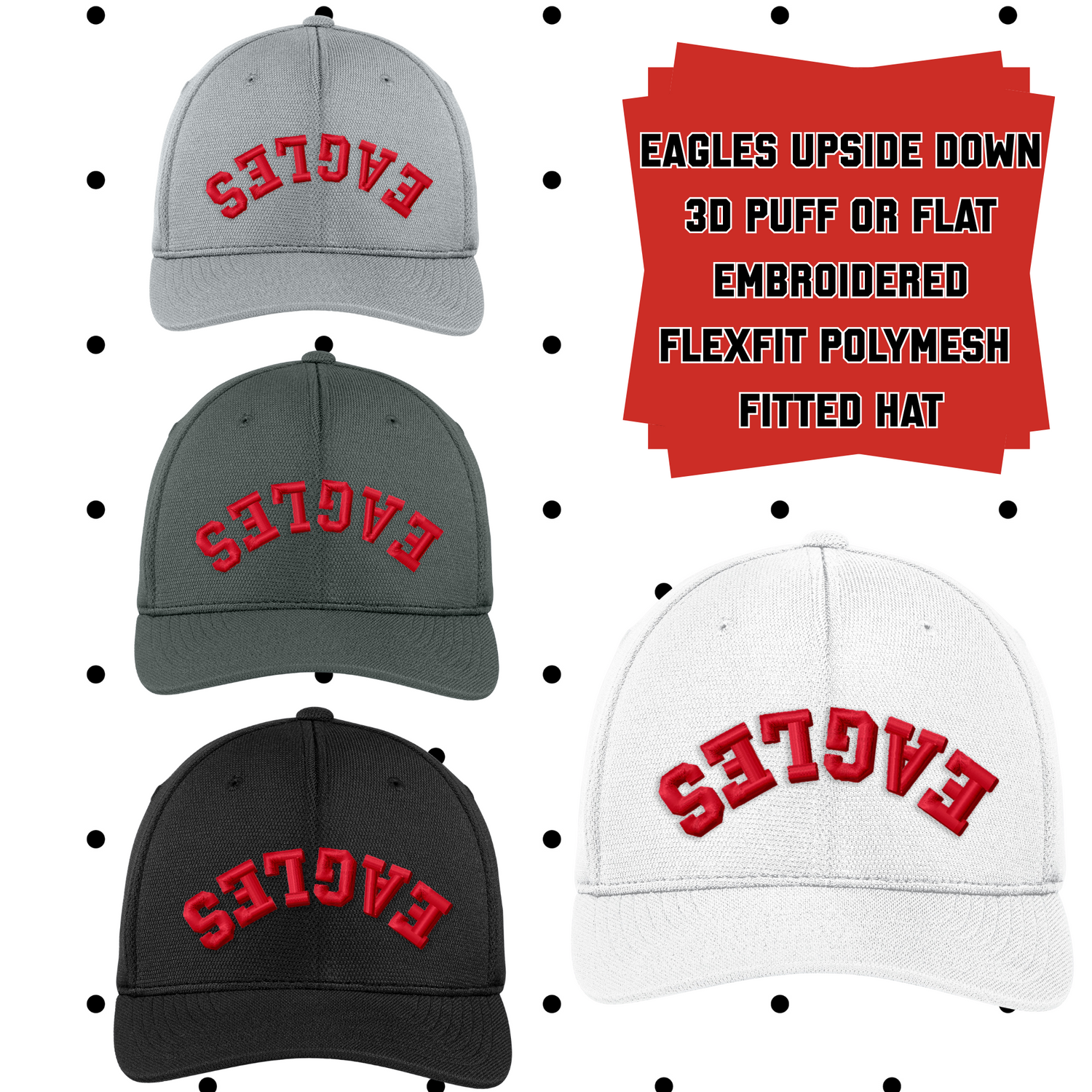 MMS- Eagles Upside Down Embroidered Flexfit Polymesh FITTED Hat, 2 Sizes