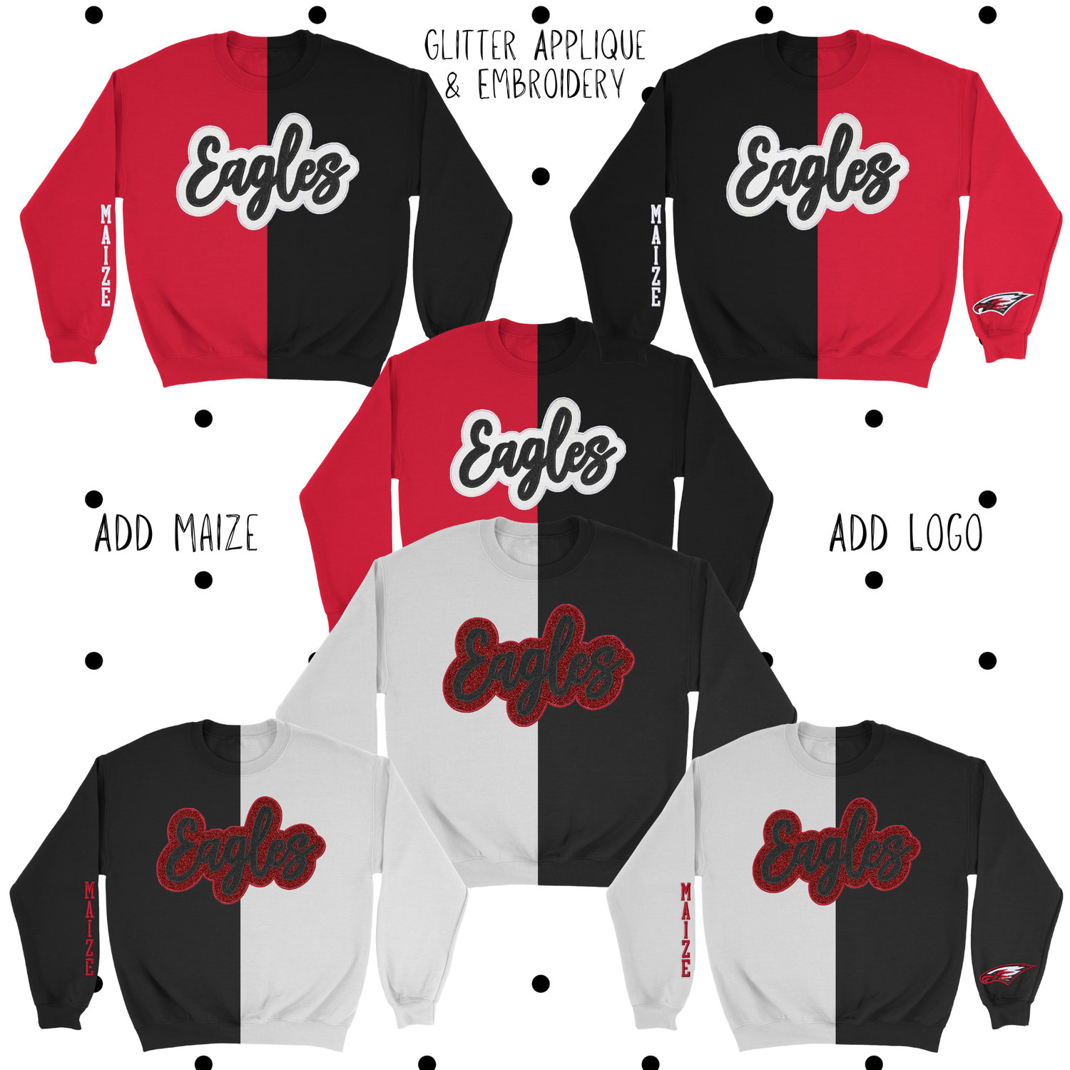 MMS- Maize Eagle Glitter Applique and Embroidered Split Two Toned Crewneck Sweatshirt, Sleeve Options