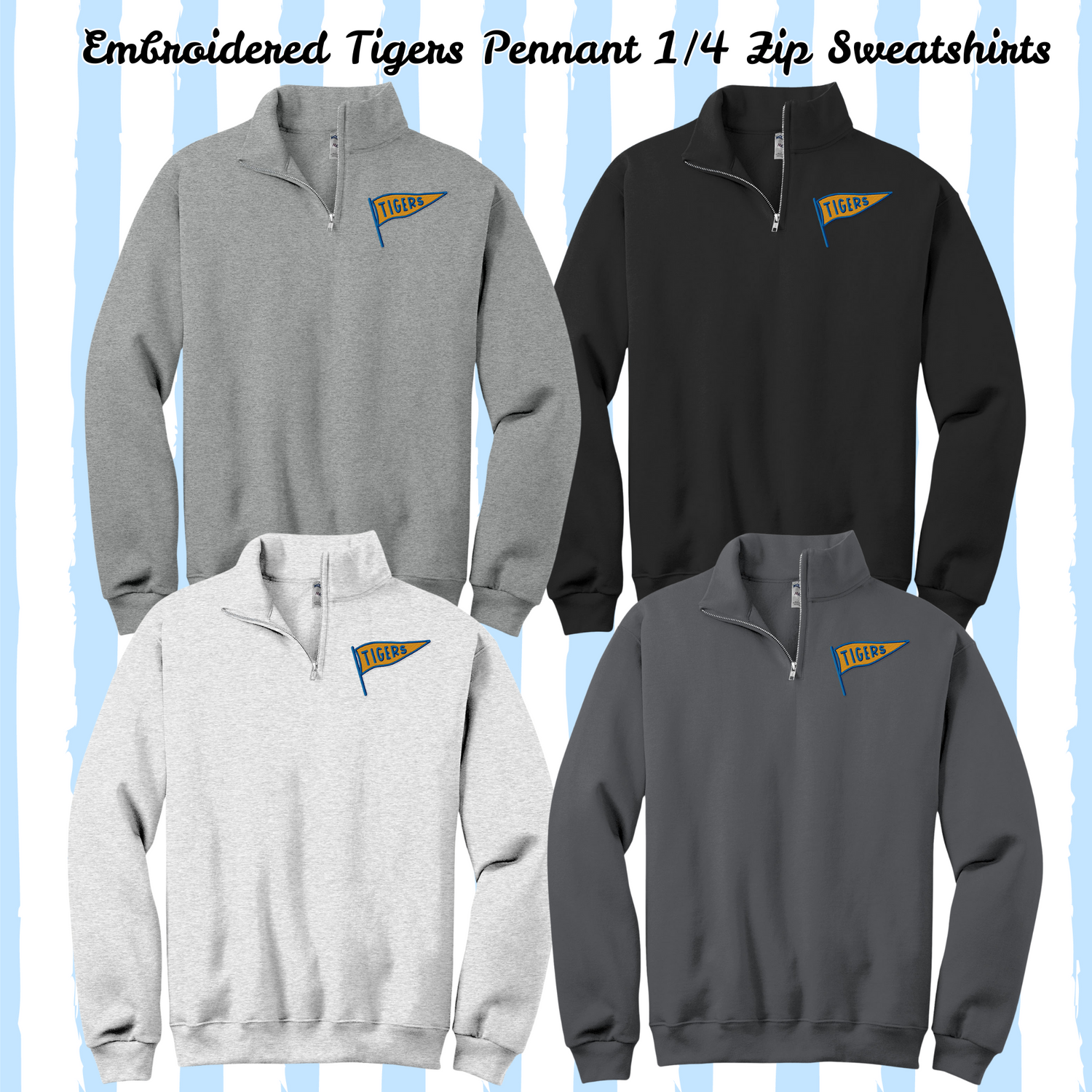 Peterson Elementary Tiger Pennant Embroidered 1/4 Zip Sweatshirt